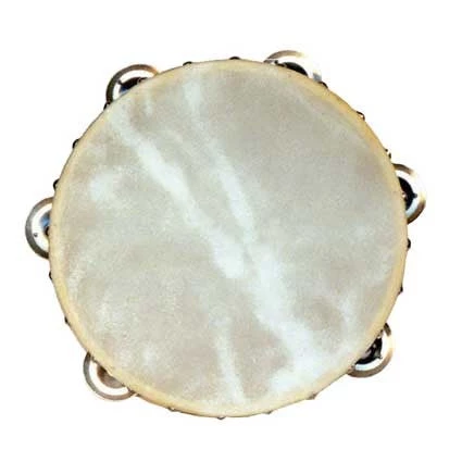 8 and a half inch calf skin tambourine with 6 pairs of jingles. Non-tunable.