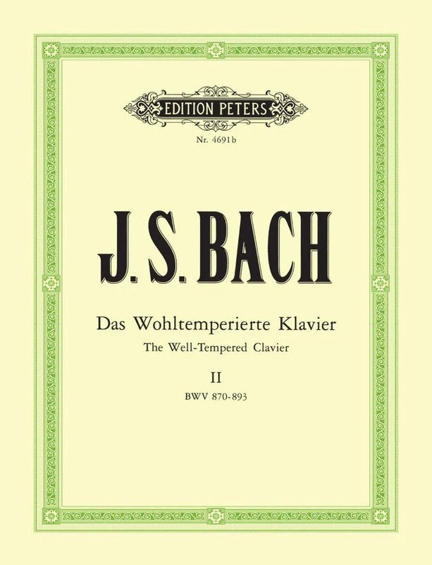Volume 2 of the Well Tempered Clavier contains the second 24 Preludes and Fugues BWV 870-893. Edited by Hermann Keller. Published by Edition Peters.