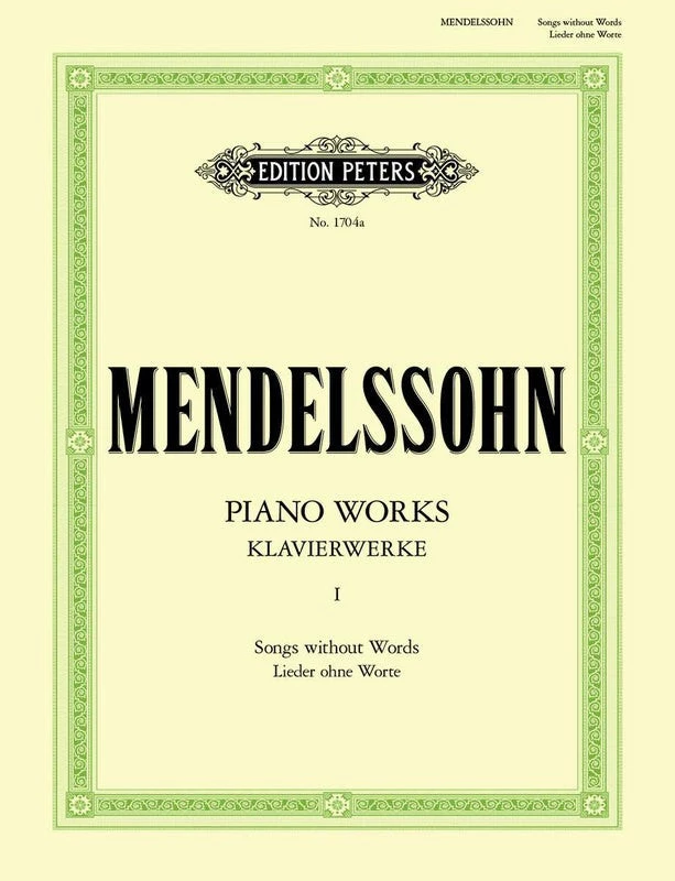 Volume 1 of Felix Mendelssohn’s Complete Piano Works: Songs Without Words. Edited by Theodor Kullak. Contents: Op.19, Op.30, Op.38, Op.53, Op.62, Op.67, Op.85, Op.102. Published by Edition Peters.