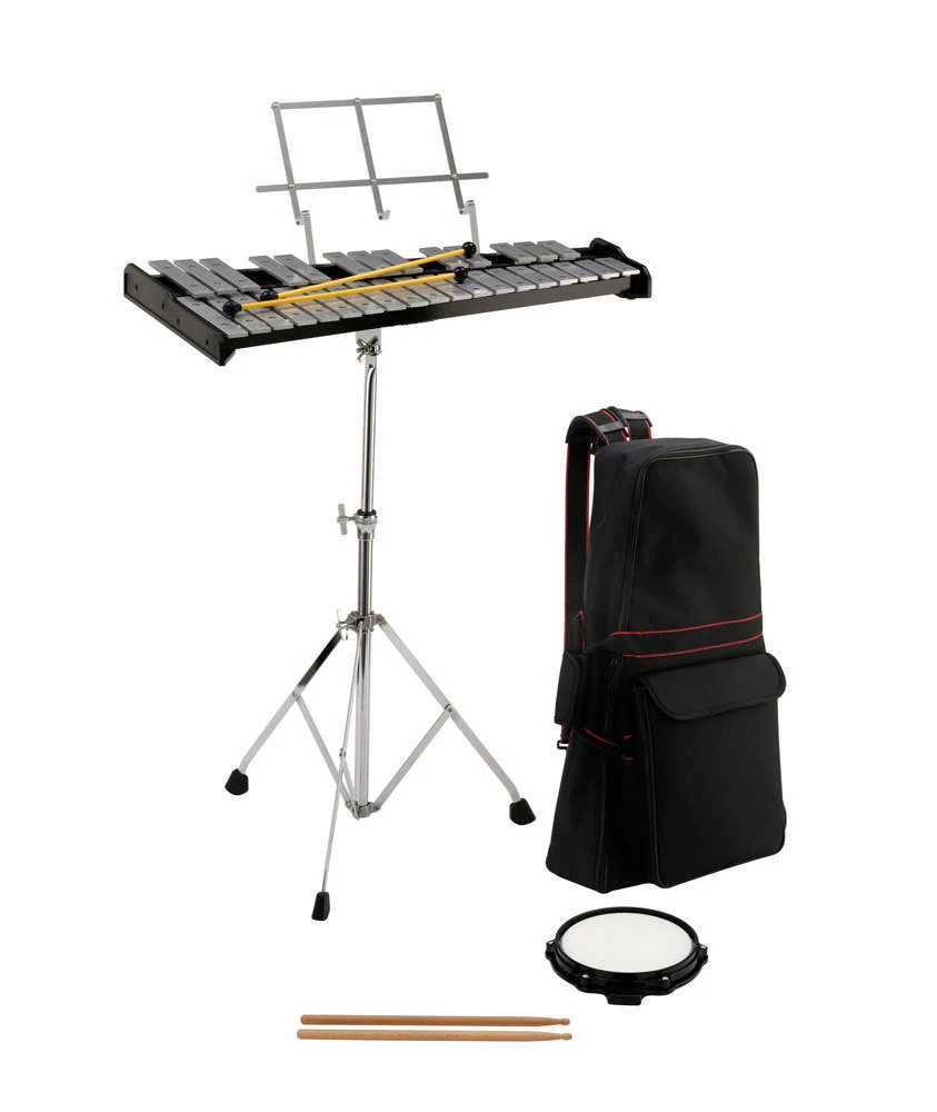Opus Percussion Bell Kit with 32-Note Glockenspiel, Stand, Mallets, Sticks, Practice Pad & Carrybag